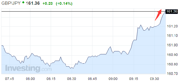 中国CPI数据公布后,风险情绪升高,澳日、镑日、美日走高。