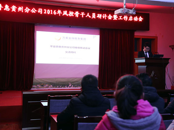 应平安普惠贵州分公司邀请,贵州万乘总经理李国福于3月11日出席平安普惠贵州分公司2016年风控骨干人员研计会暨工作启动会议,并对参会人员进行两个小时的逾期贷款清收技能培训和交流。