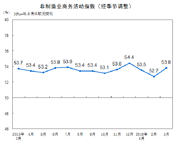 3月官方非制造业PMI53.8,前值52.7,比上月上升1.1,为近两年来的较大升幅,略高于去年同期水平,非制造业扩张步伐加快。