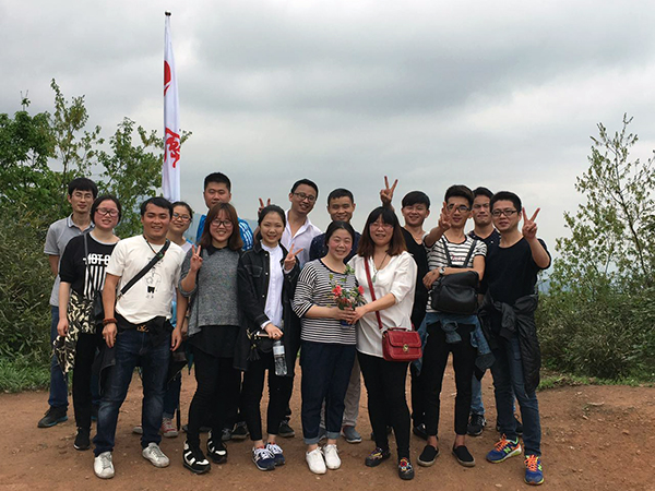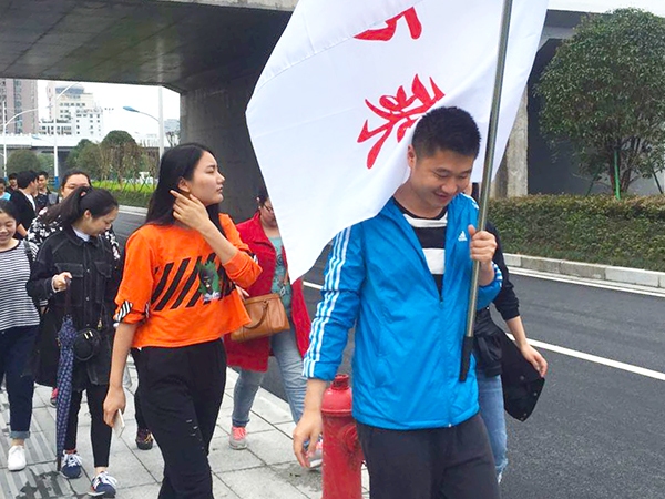 9号上午,全体同事在公司集合,随着程总宣布完活动内容及徒步过程中的安全事项,大家跟着公司“大旗”踏上了征途。历经一个半小时后安全到达“尖峰山”山脚,此时已徒步7.5公里。
