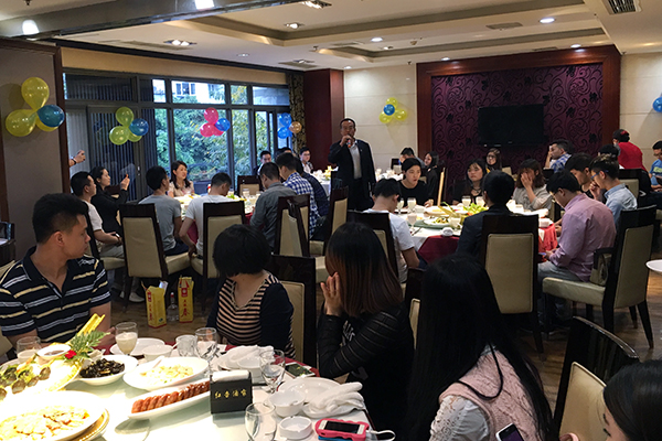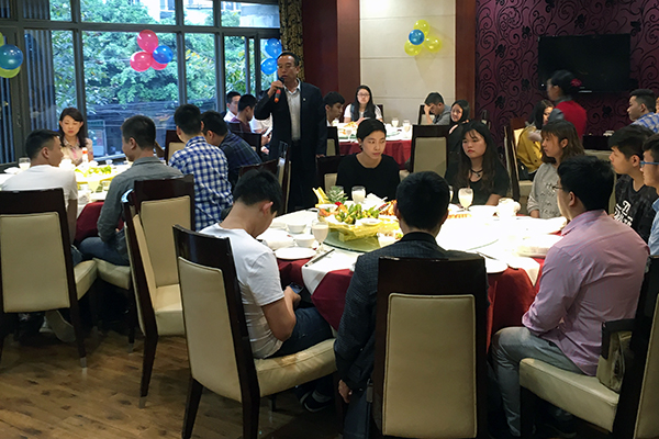 为表彰成都万乘单月创佣达到历史新高,集团CEO、总裁韩晓莅临成都万乘举行庆功宴,集团董事会秘书/行政人事部总经理刘润东、四川万乘总经理胡晓威及常务副总经理程冬华应邀参加。现场会议由成都万乘总经理胡庆梅主持。