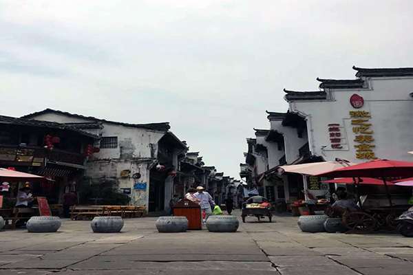 三个小时的车程,伙伴们在享受完美味的中餐之后,开始了黄山之旅的第一站——屯溪老街。来到老街,首先映入眼帘的是一座古朴高大、飞檐翘角、华彩照人的石砌牌坊。街道两旁,店铺错落有致,白墙黛瓦,窗棂门楣砖雕木刻,精巧玲珑。花纹图案镂刻精美,匠心独运。屋与屋之间全为高高的马头墙,青瓦覆盖在双坡屋顶。这里的老街保留着明清时代的街市风情,是一派别具徽州风情的建筑群体,所以有人称屯溪老街是一幅活动着的“清明上河图”。伙伴们置于风景中,玩的不亦乐乎,流连忘返。