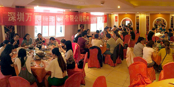 晚宴开始,杭州万乘总经理周卫平、副总经理何志龙、金华万乘总经理助理程伟以及全体员工共同举杯,庆祝杭州万乘成立六周年。