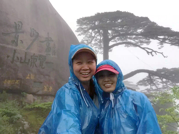 次日清晨伙伴们开始了黄山之旅最核心的第三站——黄山。从早上5点多开始就下起了磅礴大雨,但丝毫没有影响伙伴们登山的热情,首先伙伴们乘坐云谷索道上山,开始欣赏沿途黄山美景。民谚说“不到光明顶,不见黄山景”,光明顶为黄山第二高峰,与天都峰、莲花峰并称黄山三大主峰,顶上平坦而高旷,可观东海奇景、西海群峰。虽然当天由于天气原因,没有看到这些奇景,但雨中的光明顶也不失一幅美景。登上光明顶,顿时有“会当凌绝顶,一览众山小”的豪爽感觉。临近中午,我们终于看到了黄山松的代表——迎客松,其一侧枝桠伸出,如人伸出一只臂膀欢迎远道而来的客人,另一只手优雅地斜插在“裤兜”里,雍容大度,姿态优美。伙伴们在迎客松旁一一留下了灿烂的笑容。