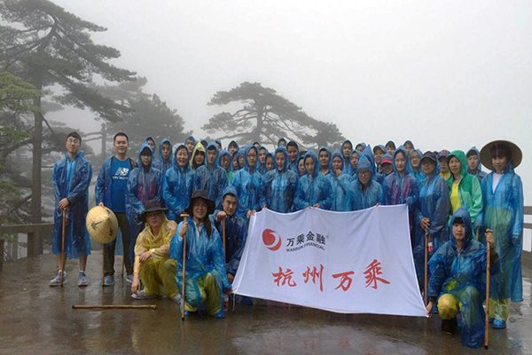 在登黄山过程中,尽管一直大雨相伴,但是杭州万乘的所有人都不畏艰难,全部成功登顶。杭州万乘全体员工一定会牢记我们的使命,始终秉承“创业精神永远燃烧”,做出更好的成绩以回报集团总裁室的信任。祝愿杭州万乘在以后的日子业绩蒸蒸日上,更上一层楼!