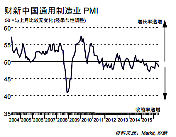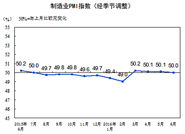 上月中国国家统计局公布的6月中国制造业PMI为50.0,低于5月的50.1,连续四个月位于扩张区间;而6月财新中国制造业PMI为48.6,创四个月新低,且连续16个月低于临界值50.0。