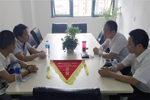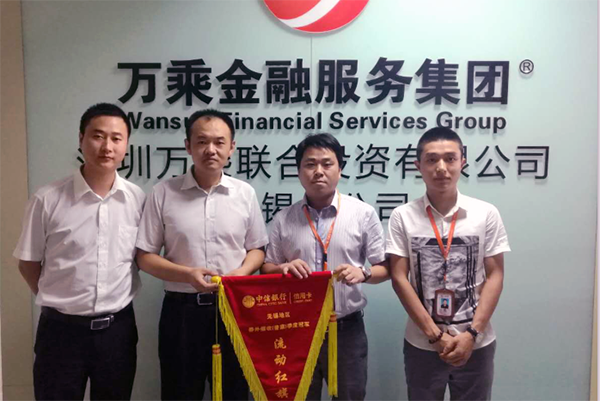 2016年7月5日,中信银行信用卡中心无锡分中心领导莅临无锡万乘检查指导工作,并代表中信无锡分中心,向无锡万乘颁发“季度冠军流动红旗”。经郭宝万总经理授权,无锡万乘总经理助理徐晓东、中信部经理助理张勇进行接待并代表无锡万乘全体员工受旗。