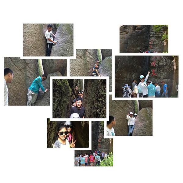 两座高大的石峰(相距35-45厘米)形成“一线天”,伙伴们纷纷通过“一线天”,留下一张张美丽的笑脸。