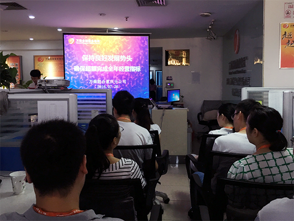 首先,孙总向全体员工详细地传达了此次工作会议的主要内容和会议精神,回顾了集团CEO/总裁韩晓在会上的总结讲话;介绍了集团上半年各家分支机构的运营情况,就重庆万乘2016年上半年的经营关键数据和利润指标完成情况向员工进行了通报,并对过去半年的工作成绩和存在问题作了详实的分析和总结。