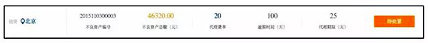 第一是资产或债务大厅,列明资产的基本信息,包括不良资产性质、金额、代理费率、逾期时间、代理期限等,如下图: