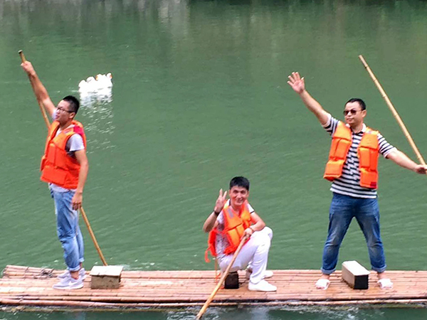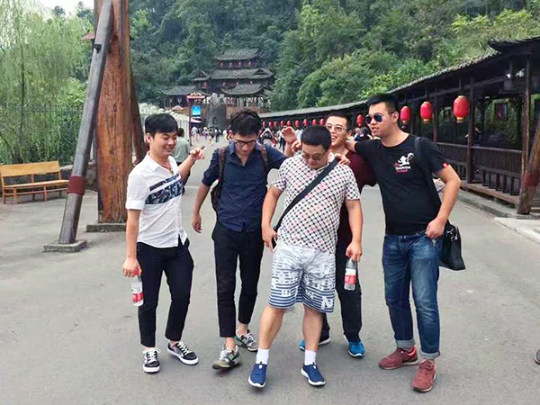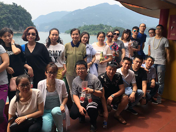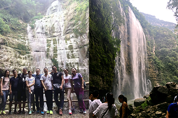 第一天清晨7:30我们在公司集合,经过四个半小时的车程,我们来到了第一个景点——三峡大瀑布。为了尽早一睹大瀑布的壮观景象,小伙伴们吃过午饭后迫不急待的出发了。大家沿着景区古朴厚实的木栈道逆溪而上,沿途青山叠翠,碧水潺潺,犹如展开了一幅绝美的山水画卷。我们欣赏了鸳鸯水车、巴人碾坊、空中索桥、佛叶楠、虎口瀑、龙潭、水袈裟大佛等数处自然景观及原生态峡谷风光,大家陶醉其间,流连忘返。最让大家难忘的是体验了全国独一无二的零距离“欢乐穿瀑”项目。来到三峡大瀑布,觉得“飞流直下三千尺,疑似银河落九天”来形容它一点都不为过!瀑布气势如虹,周围水声如雷鸣,大家惊喜着、尖叫着穿越过大瀑布,充分感受到了“集体湿身”的欢乐和激情!