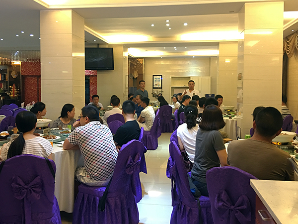 晚上公司为大家准备了丰盛的晚宴,韩总在宴上发表讲话,向大家表示感谢,鼓励大家在2016年下半年继续努力,团结一致,向集团总裁室交上一份满意的答卷!大家举杯畅饮,高声呐喊以表决心。