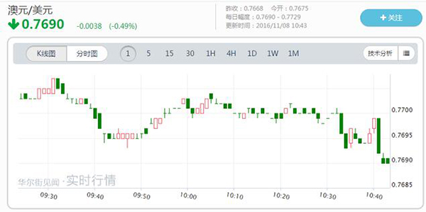 数据公布后,澳元兑美元跌0.5%。