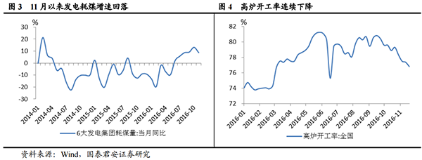 国泰君安在研报中表示,11月以来,发电耗煤同比增长8.7%,环比回落4.5个百分点,结束了6月以来的连续回升态势。