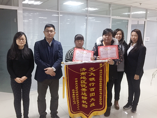 山东万乘周总表示,能获此殊荣是光大组全体员工共同努力的成果,是与光大银行济南分行信用卡中心合作共赢的体现,是我们继续奋力拼搏的动力。山东万乘将借此次嘉奖的东风再接再厉,发挥团体作战的优势,以优异的成绩回馈合作伙伴对我们的信任和期待。