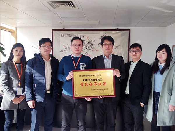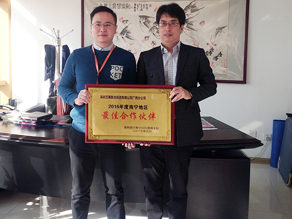 年关将至,2016年12月30日,浦发银行南宁分行卡部韩雷总经理协同卡部一行4人莅临广西万乘为公司加油鼓劲,同时授予广西万乘“2016年度南宁地区最佳合作伙伴”牌匾,广西万乘总经理谭运鹏热情接待了来访客人。