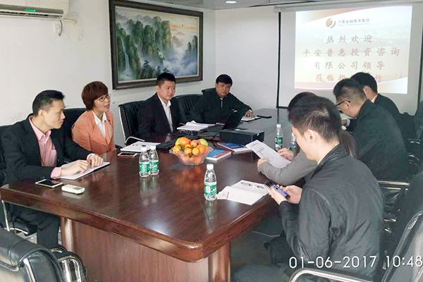2017年1月6日,平安普惠投资咨询有限公司领导莅临深圳万乘检查指导工作,深圳万乘总经理杨帅、业务总监刘锡君热情接待了来访客人。