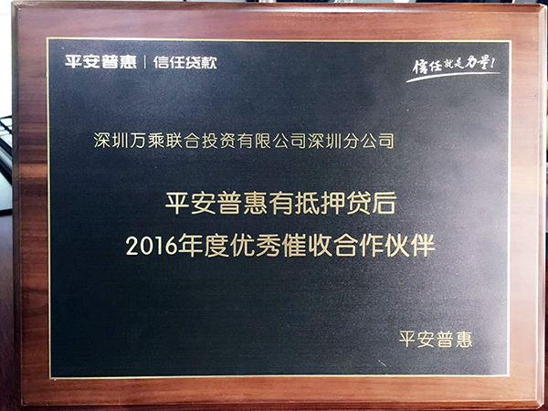 深圳万乘对2017年的合作充满信心,会一如既往的重视平安普惠,持续实现双方的良好合作,借此次的嘉奖再接再厉,发挥团体作战的优势,以优异的成绩回馈合作伙伴对我们的信任和期待!