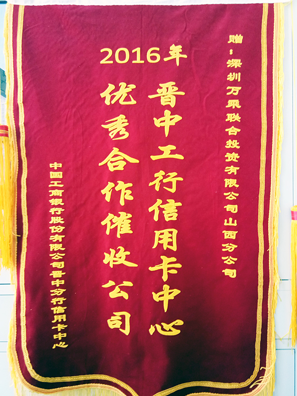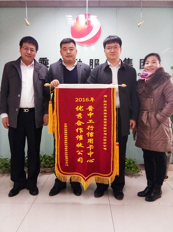 在王总和钟经理的陪同下,晋中分行领导参观了办公设施,询问了人员业务情况,对于我们取得的优异成绩表示了极大的认可,对未来双方的紧密合作表示期待,并颁发山西万乘“晋中工行信用卡中心优秀合作催收公司”锦旗。