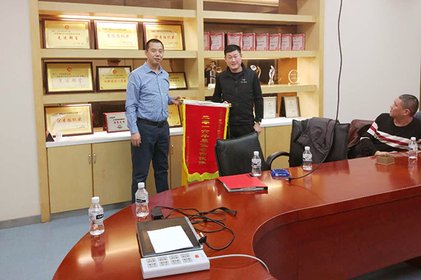 戴总对2016年的成绩进行了公布,并授予黑龙江万乘2016年度最佳合作伙伴锦旗。招商银行戴总及霍经理对黑龙江万乘的业务能力表示了高度的肯定,同时表示黑龙江万乘是现合作的7家委外催收公司中最具实力的公司,催收业绩全年排名第一。