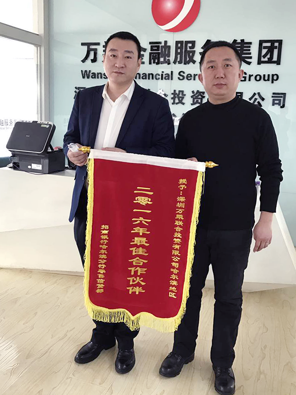 黑龙江万乘荣获招商银行颁发最佳合作伙伴锦旗
