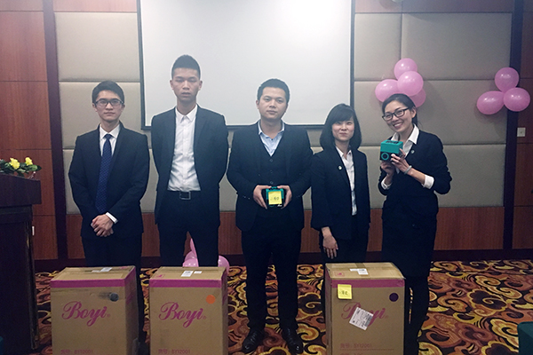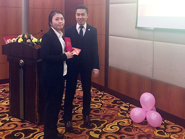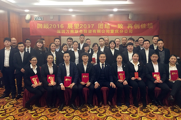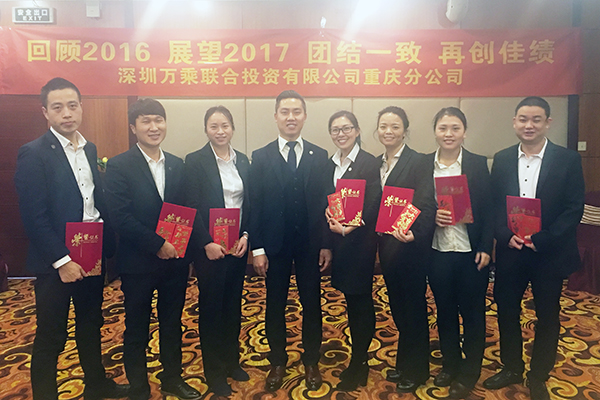 会议进行第三项,孙总对2016年整体经营情况做总结汇报,并传达了2017年集团经营工作会议精神。孙总围绕本年度集团“整顿作风 总结教训 补足短板 团结一心再出发 奋勇拼搏铸辉煌”的会议主旨展开了学习和讨论,同时也传授了一些兄弟公司的优秀经验。孙总谈到2016年重庆万乘面临的市场机遇和风险,指出了重庆万乘存在产品结构单一、个贷业务能力欠缺的短板,同时强调需要着力打造电、访结合的个贷专属团队,提升个贷产品整体创佣率;加强内部管理机制、做好成本控制。稍事休息之后,伴随着热情高昂的背景音乐,总经理室对全体员工颁发年终奖,并向各位员工在2016年度获得的成绩给予了肯定与感谢,鼓舞了大家的士气。随后向2016年优秀员工颁发三个奖项,即“2016年年度之星”4名、“2016最佳新人奖”2名、“2016年最佳管理进步奖”1名。获奖代表上台发表了获奖感言。