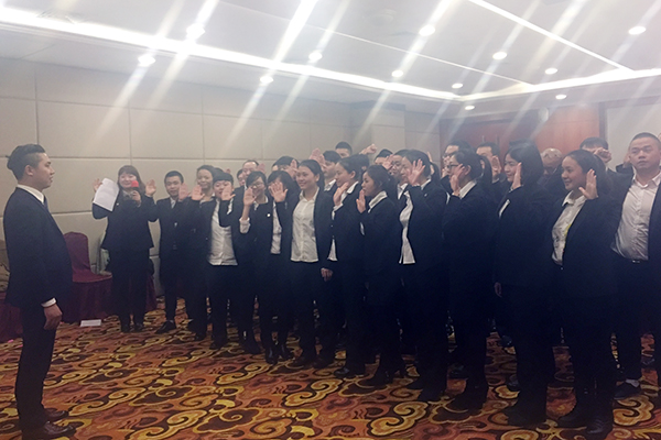 最后,重庆万乘全体员工在稽核部吴青的带领下郑重宣誓:我必在重庆万乘总经理室的带领下,弘扬万乘狼性精神,恪尽职守、奋勇拼搏、团结一心,顺利完成2017年各项工作指标!