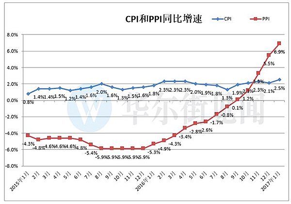 中国1月CPI同比上涨2.5%,创两年半新高,高于预期的2.4%以及前值的2.1%;1月PPI同比6.9%,创逾五年新高,也高于预期的6.5%以及前值的5.5%。