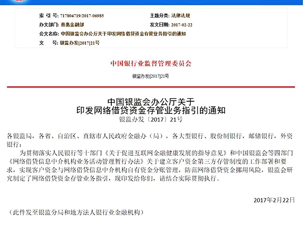 存管指引出台 网贷行业监管框架形成