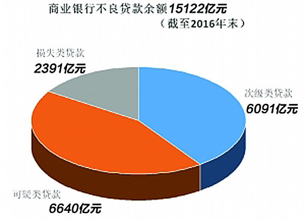 这也与银监会最新公布的数据趋势一致:截至2016年四季度末,商业银行不良贷款余额15123亿元,较上季末增加183亿元;商业银行不良贷款率1.74%,比上季末下降0.02个百分点。
