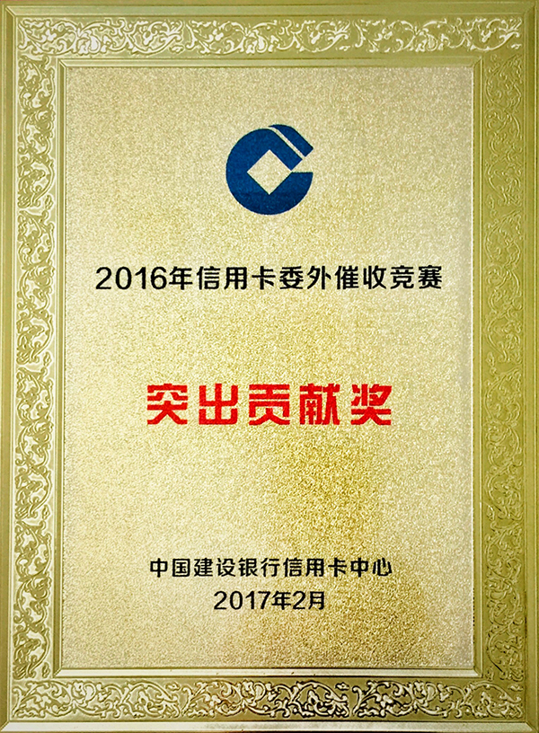2017年3月23日,万乘金融受邀参加了中国建设银行总行信用卡中心在江苏常州培训中心举行的“2016年信用卡委外催收竞赛活动颁奖会议”。万乘金融继去年获得该活动“锐意进取奖”后,今年又一举获得了“突出贡献奖”。