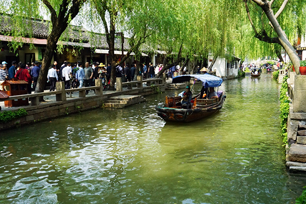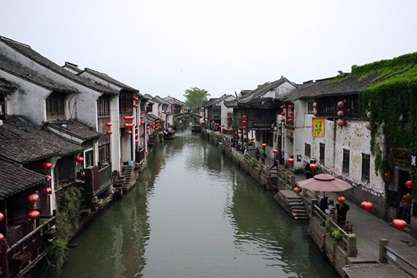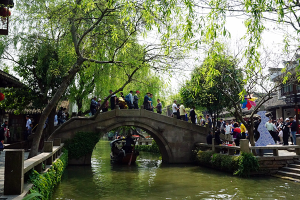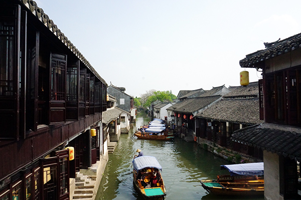 第三站抵达古镇周庄。周庄镇60%以上的民居仍为明清建筑,仅0.47平方公里的古镇有近百座古典宅院和60多个砖雕门楼,周庄民居古风犹存,还保存了14座各具特色的古桥 。景点有:沈万三故居、富安桥、双桥、沈厅、怪楼、周庄八景等。周庄镇依河成街,桥街相连。周庄人过着“桥自前门过,水从家中流”的生活。周庄有无数摇橹游船,在水巷中供游客乘坐。漫步河边,都会遇到游船在河中行驶。江南小镇,得坐船才有味道,在波光粼粼的水面上悠哉悠哉,看古镇风光,听船娘歌唱。