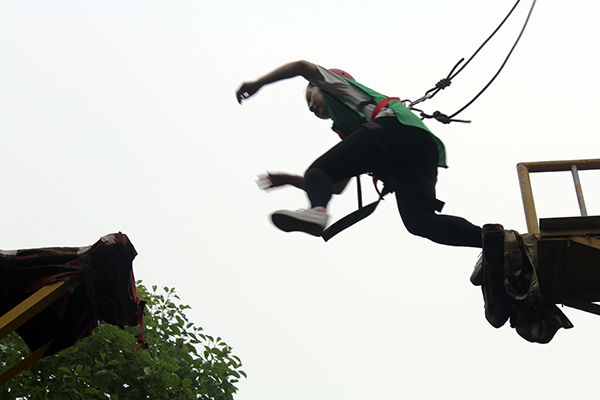 断桥一小步,人生一大步,面对高8米、宽1.2米的断桥,很多人在没有上去之前心里很紧张害怕,担心自己不能完成,但是同事们并没有因此而放弃,而是相互鼓励着去挑战自我,有位同事有恐高症,站在上面全身都在颤抖,但是伙伴们大声地给他加油打气,还是让他突破了自我,勇敢的跨出了第一步!不管是轻松的跨过去,还是战战兢兢的跨过去,都离不开大家的鼓励加油。这个项目对大家的体能要求并不高,最需要的是对心理的挑战,只要能战胜恐惧的心理,困难就迎刃而解。