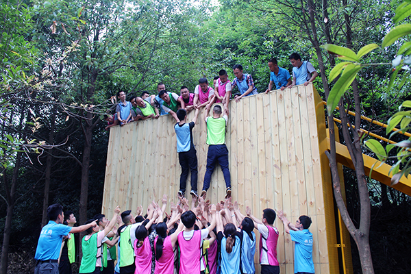 面对4.26米高的毕业墙,任凭你的能力再强,也不可能一个人徒手攀上,但是集体的力量却是强大的,团队总指挥白总一声令下,所有人共同努力,团结协作,大家都甘当人梯,为伙伴无怨无悔地付出,踩疼了,受伤了,没有一个人吭声,我们65人预计要3个小时的翻越,最终仅仅用了11分26秒就完成了!这个原本以为根本做不到的事情,在集体的努力下完成了,可见团队的力量。也充分说明,任何时候都不要小看自己的能力,只要我们敢拼,一切困难都能克服!