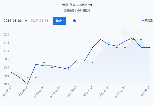 国家统计局今日发布数据显示,中国5月官方制造业PMI51.2,预期51.00,前值51.20。