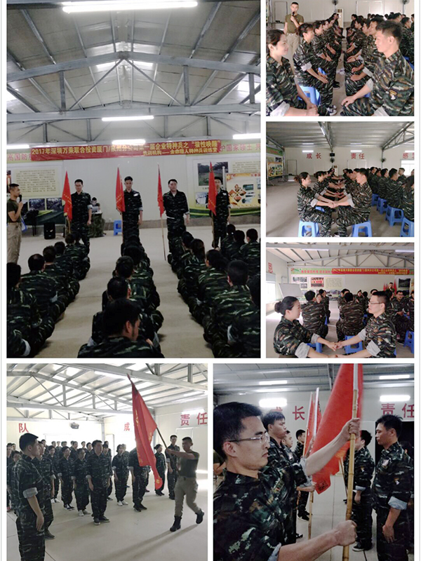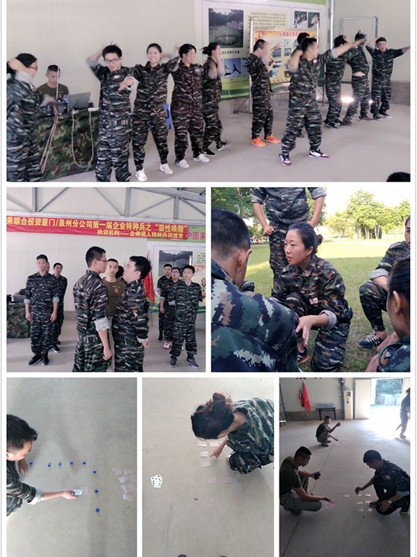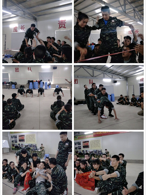 训练包括团队表现、背宣誓词(“心态”凝聚力及记忆力)、队列队形(“形态”统一性及意志力)、群魔乱舞(“状态”解放自我)、抽纸牌(策略、协作、执行力与创新思维)、绝地反击拍手“我们是最棒的团队”(团队精神和速度的较量)、死亡爬行(承担与“玩命精神”)、团队大融合(互相关心及团队默契)、剪刀石头布(逆向思维与反应力)、连队会操PK(团结一致及士气)、跨越生命线(策略、奉献及凝心聚力、协作共赢)、分享并许下承诺等一系列既活泼生动又非常具有教育纪念意义的体验式游戏培训,使平时耳熟能详的“目标、团队精神、沟通协调、执行力、资源共享、创新、超越自我”等内容变得寓意深刻,训练带来了心灵的冲击,打破了固有思维模式,引发内心深处对生活、对工作的思考。