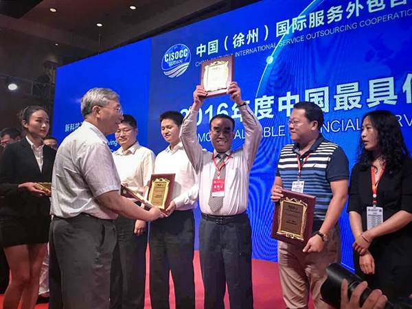 在2017年7月5日于江苏徐州召开的“中国(徐州)国际服务外包合作大会”上,万乘集团被大会组委会授予“2016年度中国最具价值金融服务企业”大奖。万乘集团创始人、CEO、总裁韩晓代表万乘领取了这份沉甸甸的荣誉。
