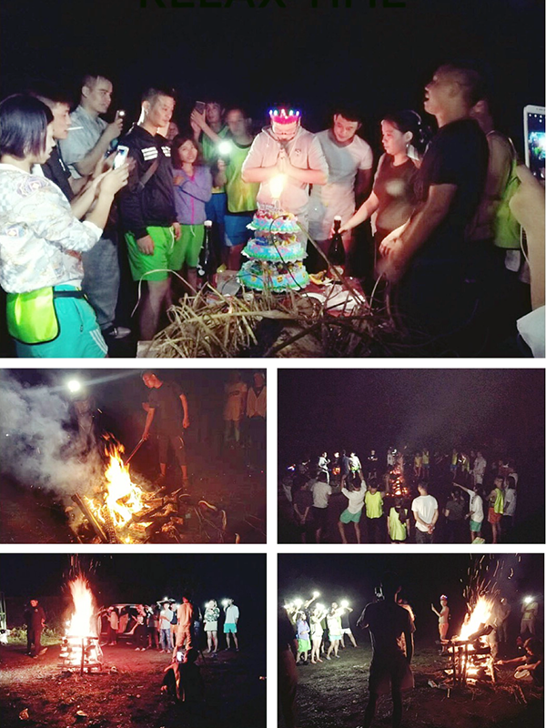 酒至半酣,李总带着全体员工一起为贵州万乘许下生日愿望,由近期业绩表现较佳的员工切下生日蛋糕,开启香槟,燃放礼花,为贵州万乘六岁生日送上祝福,整场晚会,欢声笑语,热闹非凡,优美的歌声和舞蹈将篝火晚会的热烈气氛推向了高潮。
