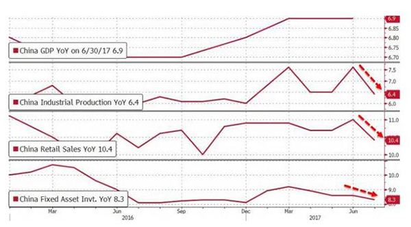 继6月意外走高后,中国7月规模以上工业增加值增速大幅放缓,受东部地区和制造业增加值回落幅度较大影响。同时公布的一系列7月零售、固定投资和房地产开发投资等数据也出现不同程度放缓。