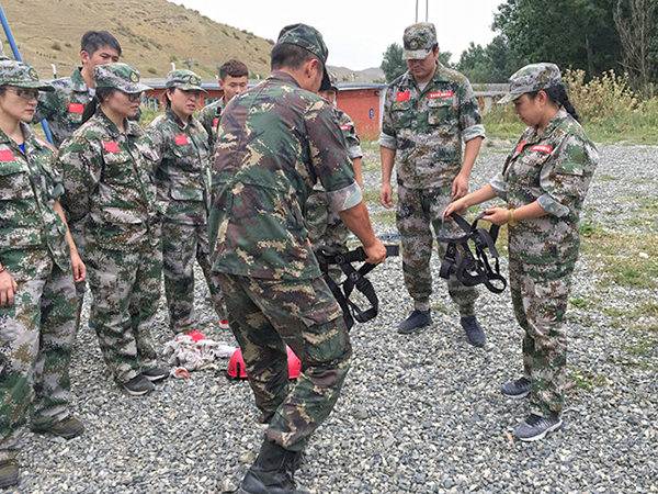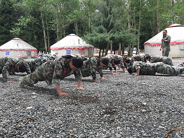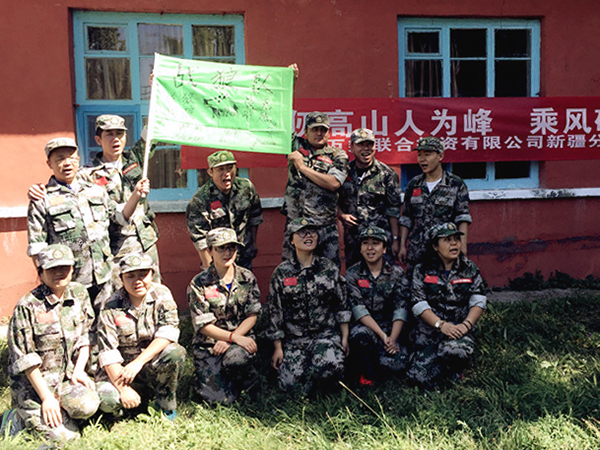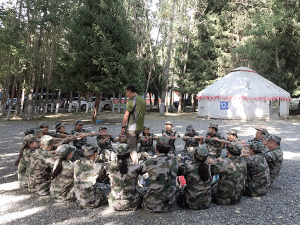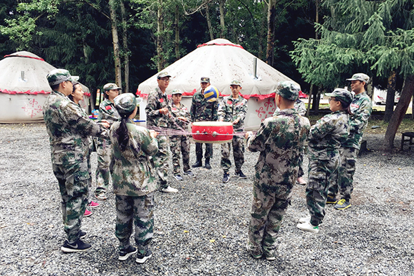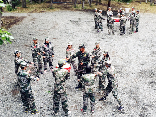 此次的活动形式为:两天一夜《卓越团队》拓展训练。准点出发后,大约走了一个半小时的车程,我们到达了位于南山菊花台的战鹰拓展训练基地。下车后,放下行装,集合更换迷彩服,大家显得非常兴奋,有的忙着整理着装,有的三三两两地照相,还有的讨论着,穿着军装好像圆了心中的军旅梦。突然,一声哨响,教官把大家从现实拉进了“战斗状态”。
