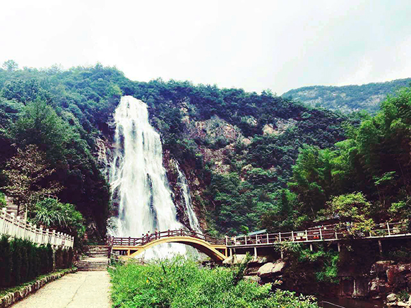 晚上的8点30分,篝火晚会正式在开始,大家围着篝火一圈一圈又一圈的转着跳着笑着,每个人的童心与热情似乎在那一刻被唤醒,伴着舞蹈与歌声我们结束了疲惫且欢乐的一天!第二天早上9点整,我们早餐过后,乘大巴出发,经过1.5小时的车程,来到了大别山彩虹瀑布景区。景区内群峰迭起,山峦从翠,主景点“华东第一瀑布”高98米,宽35米,水流自猴子崖飞泄而下,气势磅礴,吼声如雷。站在不同方位观景台上看到清澈的河水撞击坚石,水花四溅,犹如喷雾行云。据导游说阳光透过水雾,会呈现一道绚丽的彩虹,但天公不作美,我们当天并未看到彩虹,但飞泻而下的大瀑布足以震撼我们的心灵,于是小伙伴们又开始了各种造型的各种拍,各自为这趟旅途留下美好的纪念。
