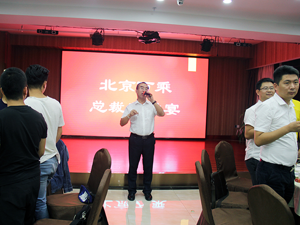 石家庄万乘总经理谢庆标代表兄弟公司致贺辞。北京万乘总经理董洪青代表呼叫中心及北京万乘全体员工向集团总裁室郑重表态:绝不辜负集团的殷切期望,继续发扬万乘的狼性精神,众志成城,奋勇拼搏,以优异的业绩,向总裁室交一份满意的答卷!