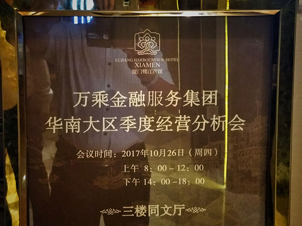 2017年10月26日,万乘金融服务集团总裁室在厦门召开华南大区季度经营分析会。集团CEO/总裁韩晓主持会议,集团总裁助理杨帅及深圳万乘、广州万乘、江门万乘、东莞万乘、汕头万乘、中山万乘、佛山万乘、福州万乘、厦门万乘、泉州万乘、三明万乘、海南万乘、三亚万乘共13家分公司负责人参加了会议。