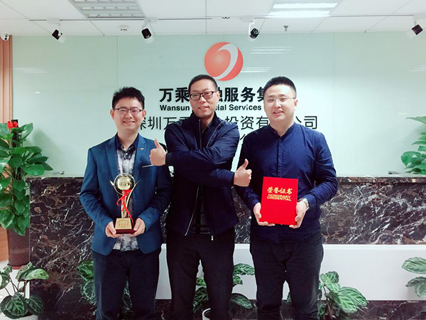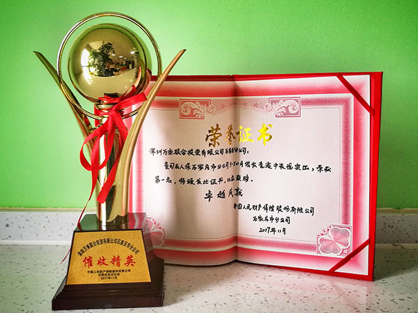 2017年11月10日,中国人民财产保险有限公司石经理来到石家庄万乘公司,为人保专案组在人保财险组织的季度催收竞赛活动中荣获催收业绩第一名特此颁发奖杯和荣誉证书奖励。石家庄万乘总经理谢庆标对来访石经理表示了热烈欢迎,随后谢总及业务优秀代表韩钊接待了来访客人。