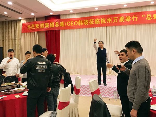 周总、何总携杭州万乘全体员工向韩总保证绝不辜负韩总的殷切期望,大家一定会撸起袖子加油干,向总裁室交一份满意的答卷,为万乘集团十周年献礼,并恭祝万乘集团十周年快乐!