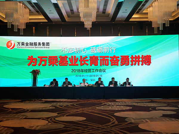 新春伊始,万物萌生,春暖花开,2018年1月12日,万乘金融服务集团2018年经营工作会议于广东深圳正式召开。集团CEO/总裁韩晓以“不忘初心,砥砺前行,为万乘基业长青而奋勇拼搏”为主旨在会上发表了工作报告。会议由集团董事会秘书兼行政人事部总经理刘润东主持。万乘金融服务集团首席财务财务官雷波,副总裁崔明绪,总裁助理杨帅,总裁助理周卫平,各职能部门负责人以及集团63家营业机构负责人共76名高管出席本次会议。