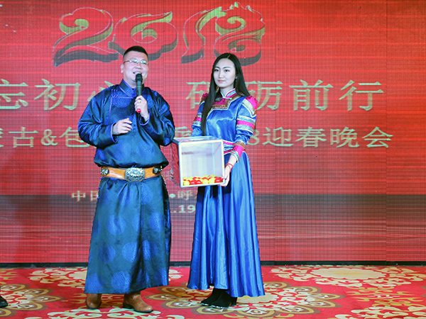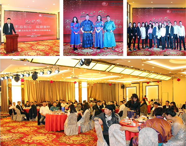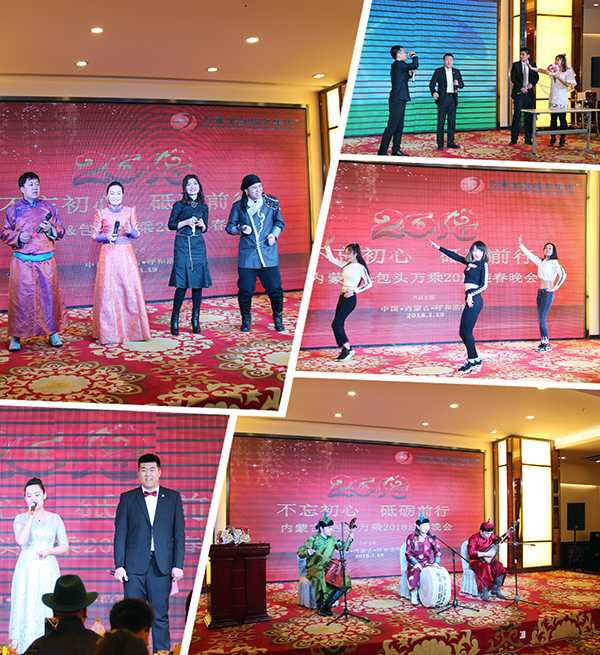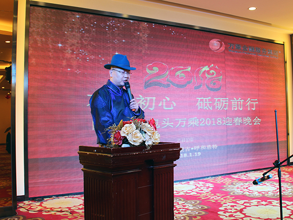 紧接着,在傍晚时分,内蒙古万乘和包头万乘的迎春晚会于东达酒店宴会厅隆重举行。在大家的热烈欢迎的掌声中,副总经理巴图上台致辞,引用了王国维先生的人生三境界:“‘昨夜西风凋碧树,独上高楼,望断天涯路’,代表着我的执着和追求很少被人理解;‘衣带渐宽终不悔,为伊消得人憔悴’,代表着我对自己的理想信念从来没有动摇过,我坚信,我能赢;‘梦里寻他千百度,蓦然回首,那人却在灯火阑珊处’,今天,我要说,那人就是内蒙古和包头分公司,就是在座的各位朋友和同事们。”副总经理巴图跟在场的同事伙伴们分享了他的人生理想,以及对大家的深厚感情。