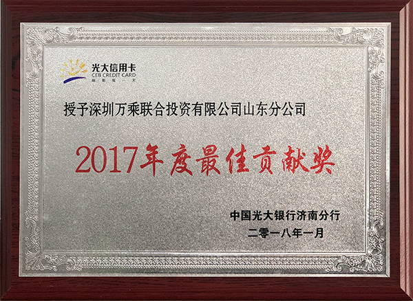 获此殊荣,离不开万乘全体员工的辛勤付出和光大银行的信任与帮助。在此,感谢光大银行济南分行对山东万乘的肯定和鼓励。2018年,我们定不负众望,做到合规运营开展业务,全力以赴做好光大银行的催收业务,秉承万乘的狼性精神,以优异的成绩回馈光大银行众位领导对万乘的信任和期望。