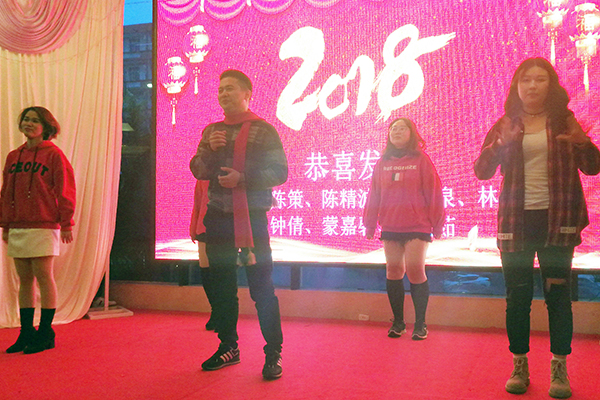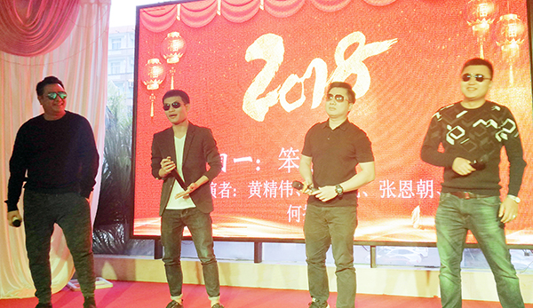 随后,各部门同事都纷纷拿出看家本领,各种节目让人应接不暇、高潮迭起,海南万乘个贷部“四大天王”的开场演唱“笨小孩”以其风趣的肢体动作、冷酷十足的服装扮相以及铿锵有力的歌声,一下就博得了个满堂彩。