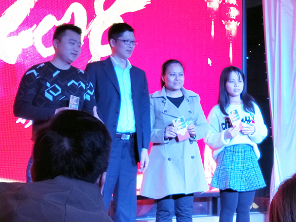 接下来不断推出的精彩演出和游戏节目给大家带来了无穷快乐,三等奖、二等奖、一等奖的陆续揭晓,让晚会的气氛达到了沸点。